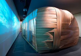 the six senses spa in paris is breathtaking. the curved wrapped wood walls look like a cocoon where one gets massages and seaweed wraps. there is one room that has a digital display of the paris skyline in real time. so beautiful. (via coolhunting)